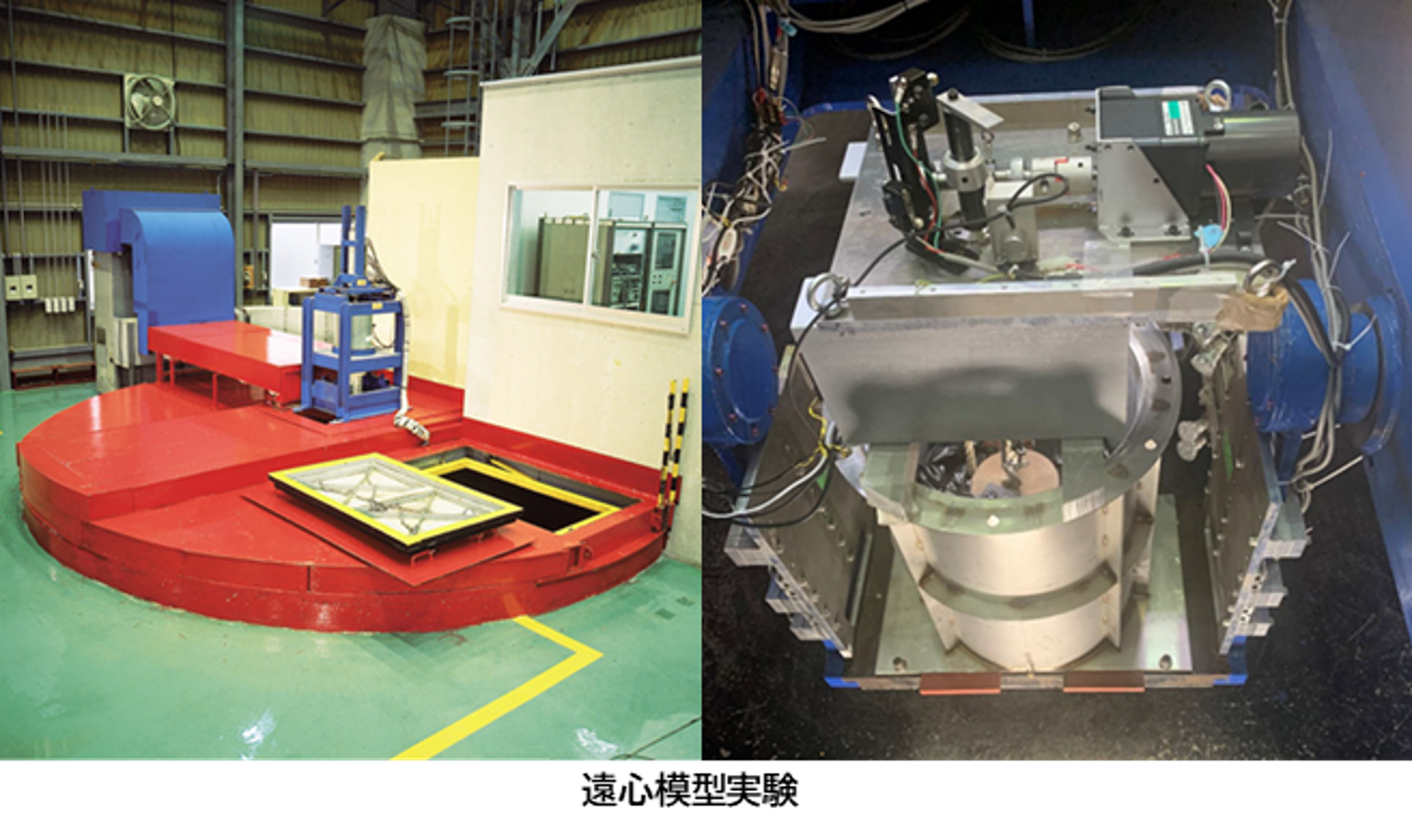 TLP型浮体形式の係留基礎を設計するうえで、構造物・地盤の挙動を把握するために、縮尺模型を用いて実際の応力状態を再現できる遠心載荷実験を行いその特性を確認しています。